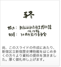 新宿東口商店街振興組合「創立三十周年を祝う会」で上映されたスライドより