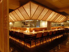 ソムリエが厳選したワインや地酒、焼酎。オープンキッチンを囲んだにぎわいのカウンター席やお2人連れに最適の眺めの良いカウンター席、やわらかな竹のスクリーンに囲まれた落ち着いた個室、等いろいろ使い分けが可能です。